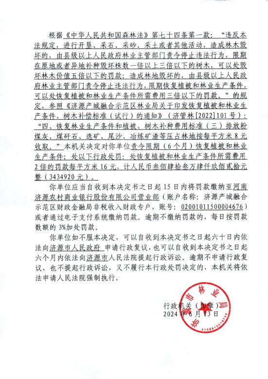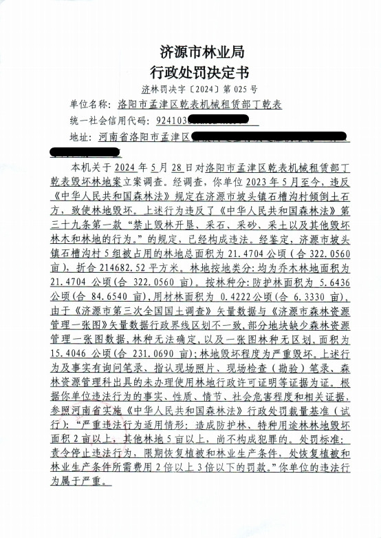行政处罚决定书(济林罚决字〔2024〕025号)