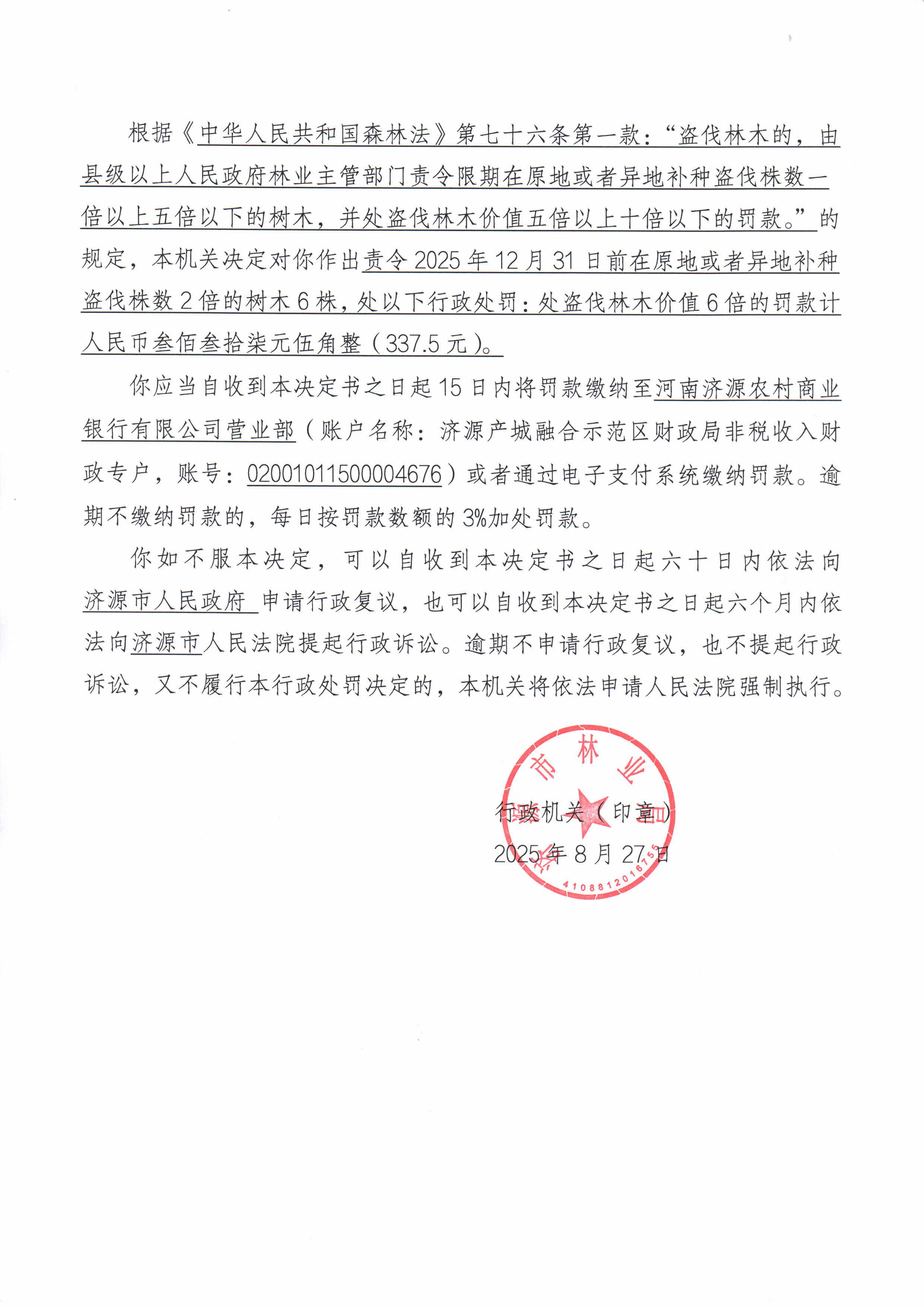 行政处罚决定书(济林罚决字〔2025〕054号)