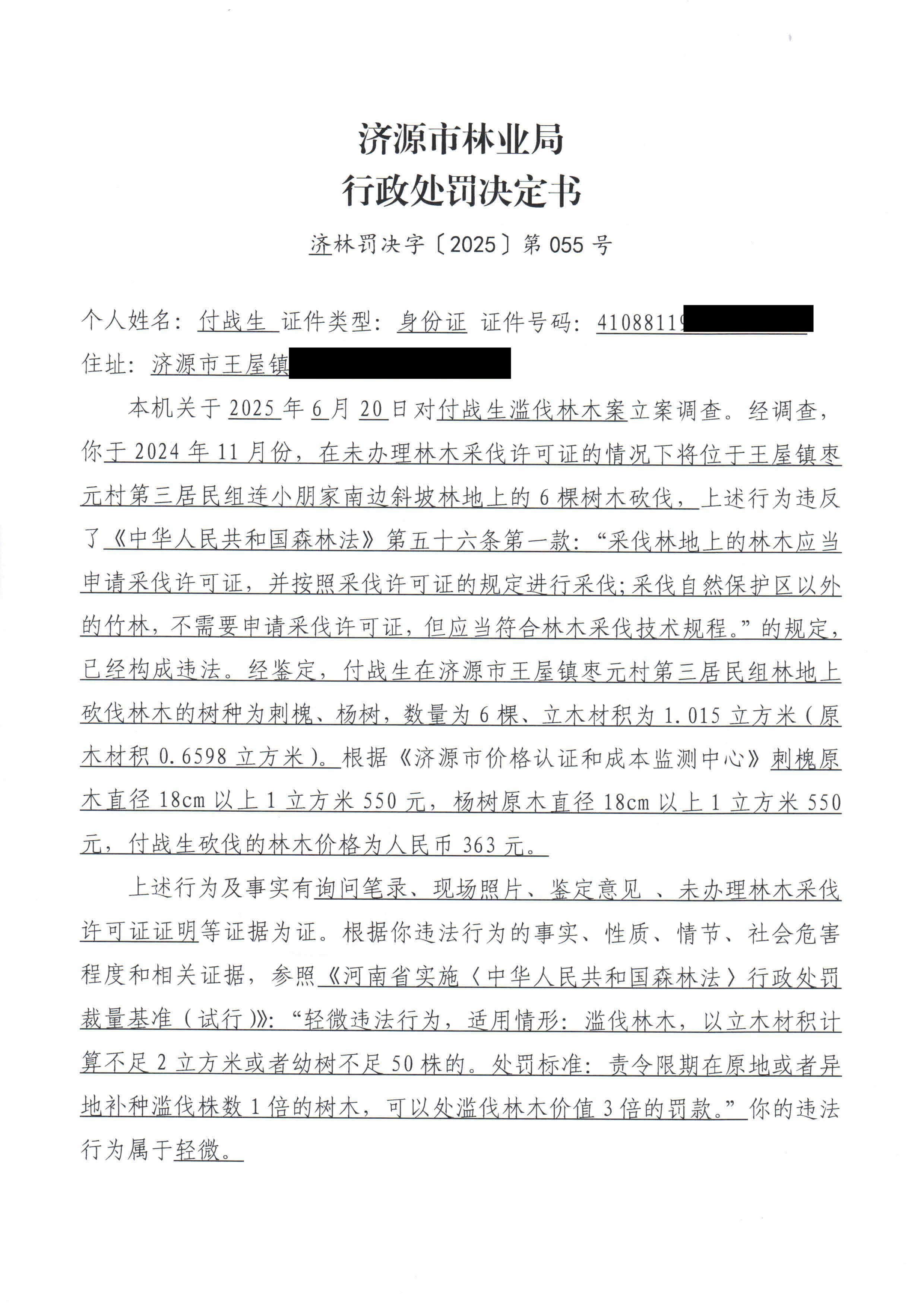 行政处罚决定书(济林罚决字〔2025〕055号)
