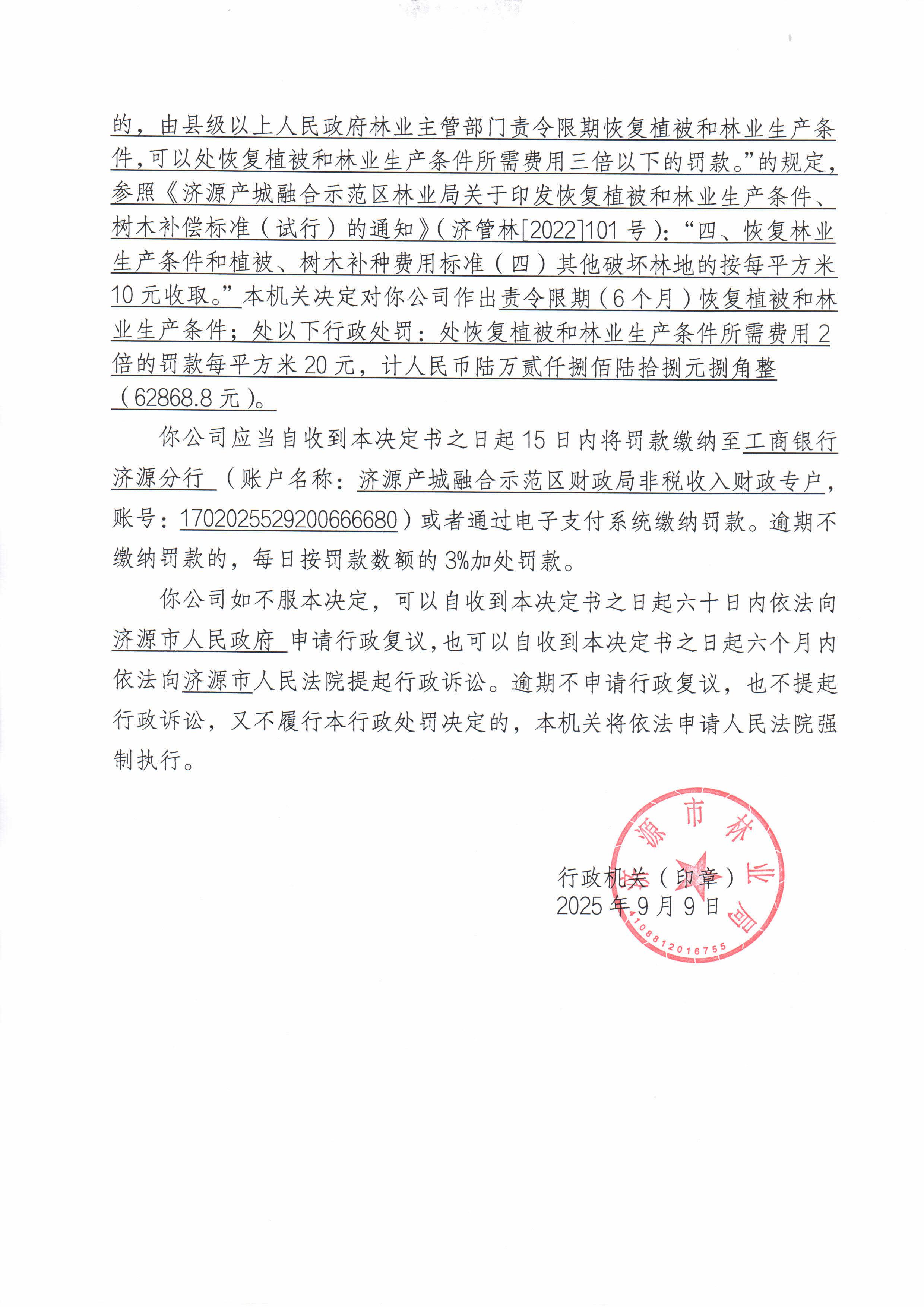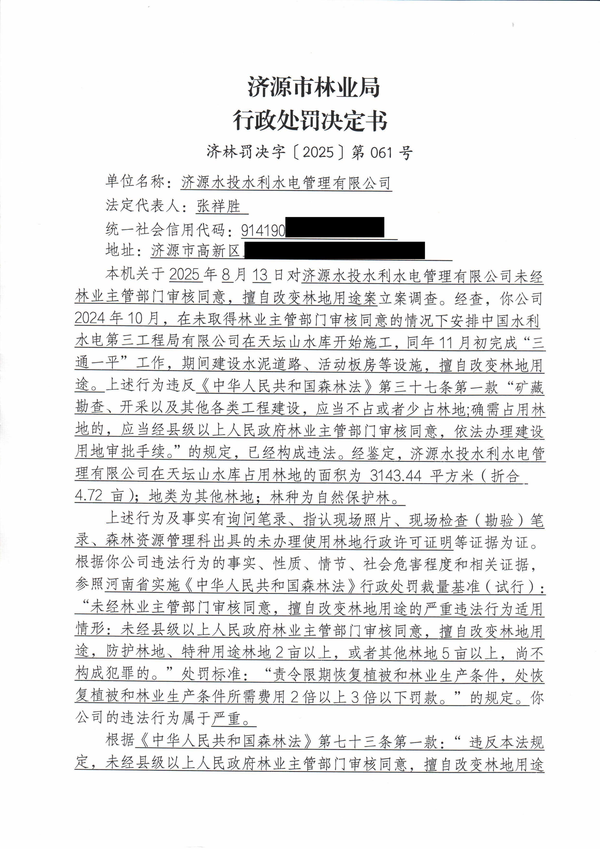 行政处罚决定书(济林罚决字〔2025〕061号)