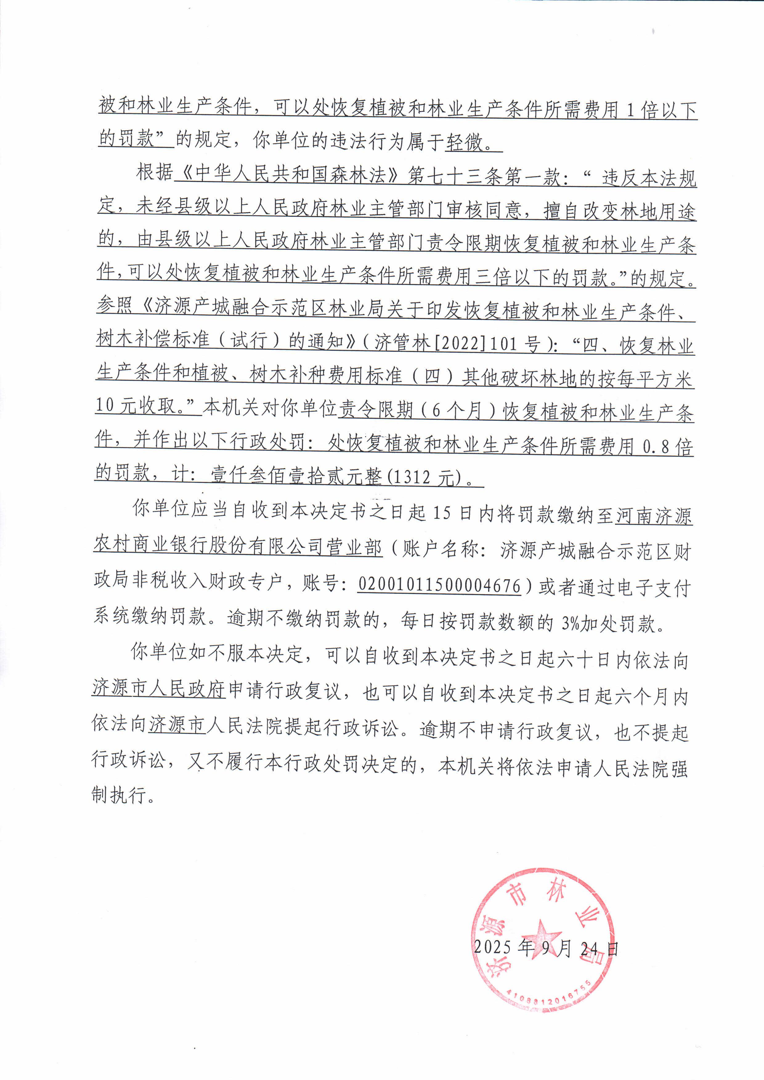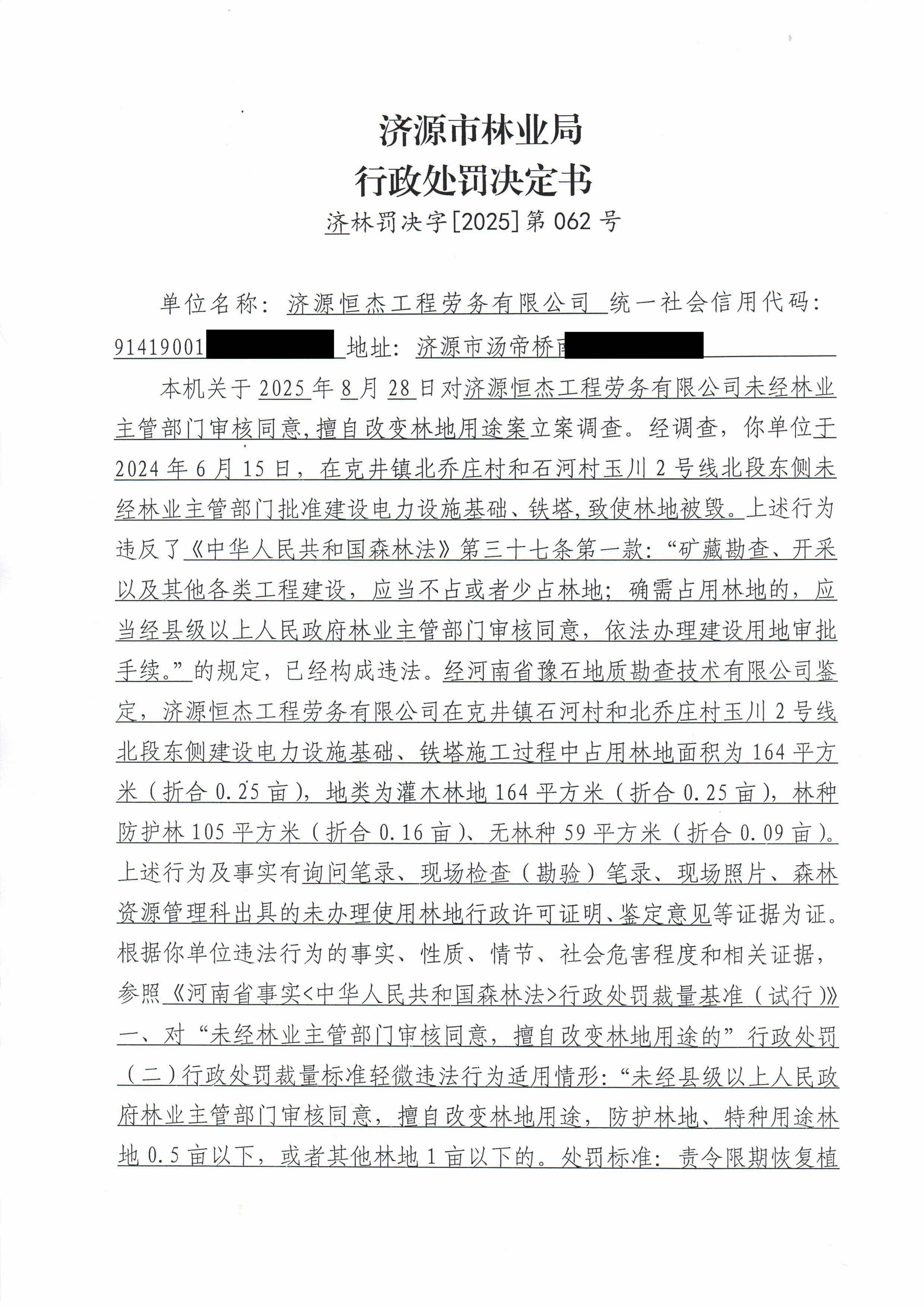 行政处罚决定书(济林罚决字〔2025〕062号)