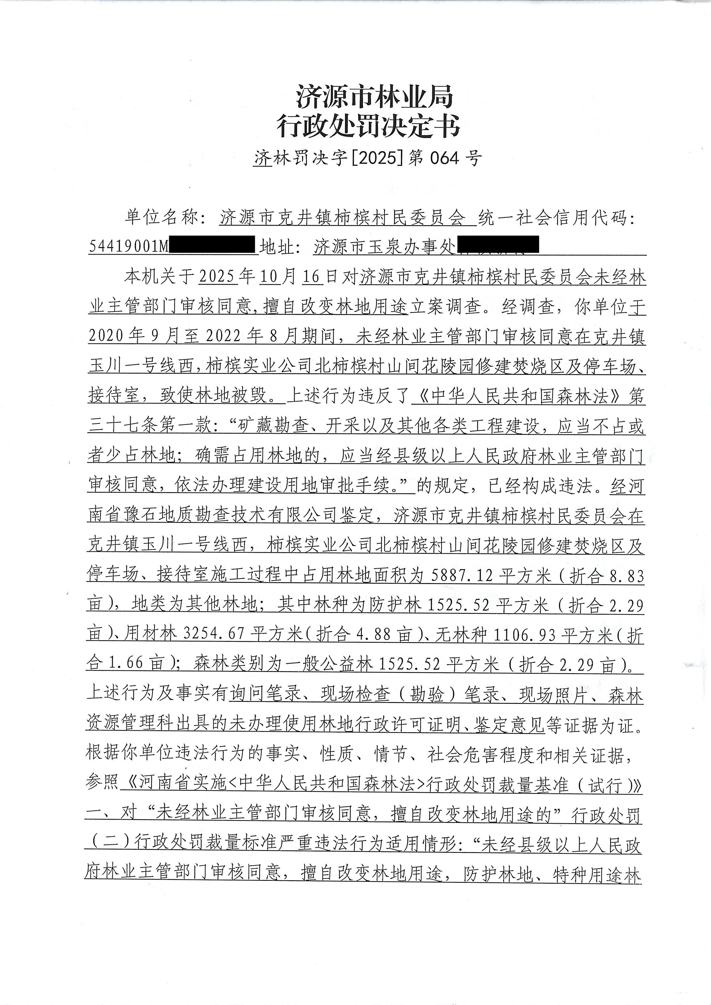 行政处罚决定书(济林罚决字〔2025〕064号)