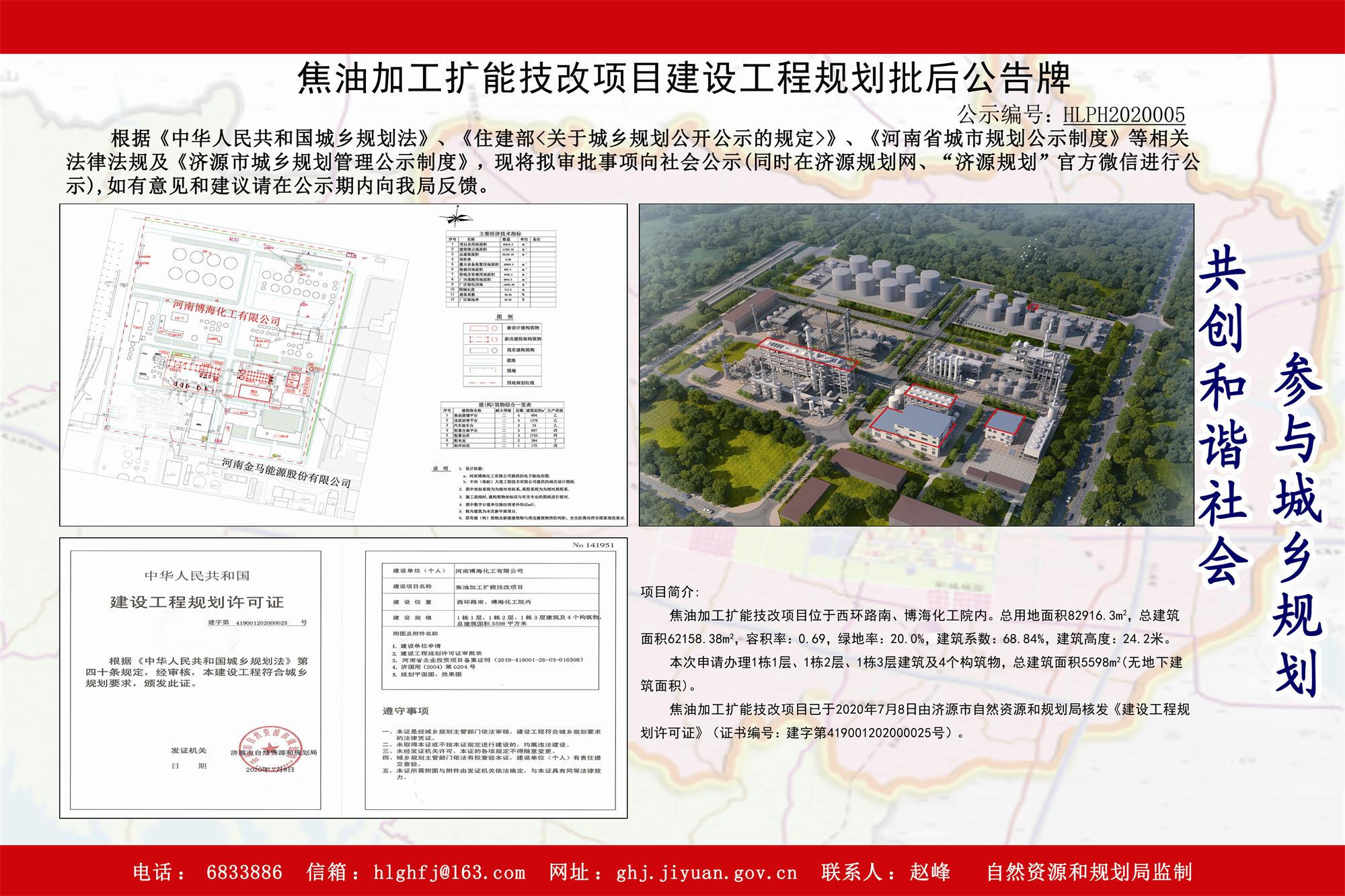 HLPH2020005 焦油加工扩能技改项目建设工程规划批后公告